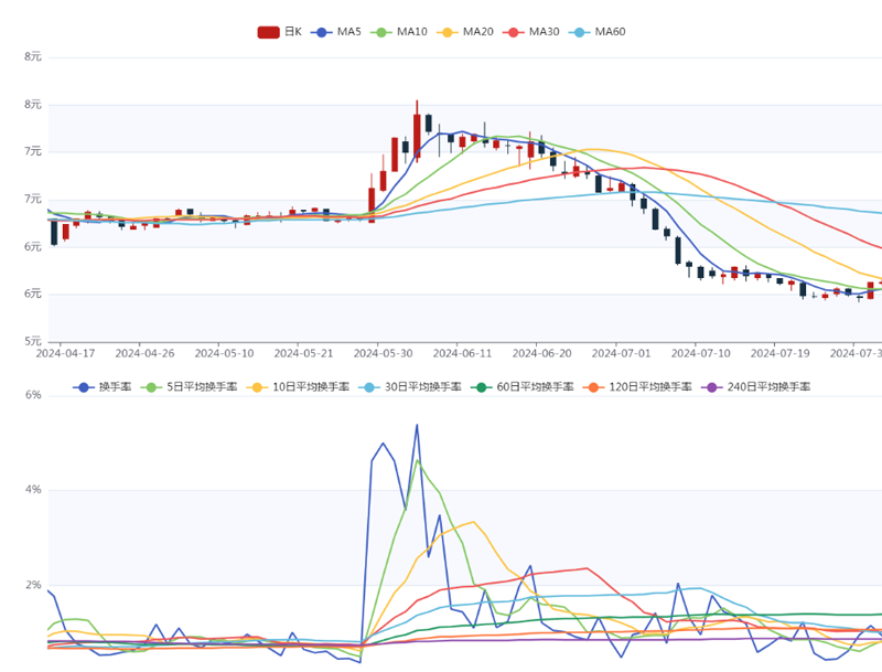 | 换手率=成交量÷流通股本×100%=交易活跃程度。通常,高换手率如超过10%,意味交易活跃,买卖分歧较大。低换手率如低于1%,意味交易冷淡。具体要根据个股历史行情比较分析。 |